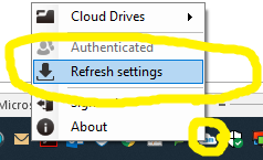 2. Right-click on the cloud icon by your clock, click the "Refresh Settings" option and wait for another minute or two.